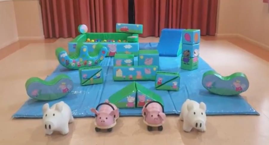 Peppa Pig Soft Play in Medway, Kent brings bright, safe fun to birthday parties and events. This soft play package includes a colourful soft-play set plus two inflatable pigs and 2 ride in pigs. Perfect for toddlers and young children. Easy to set up. Designed for active play and safe exploration.
